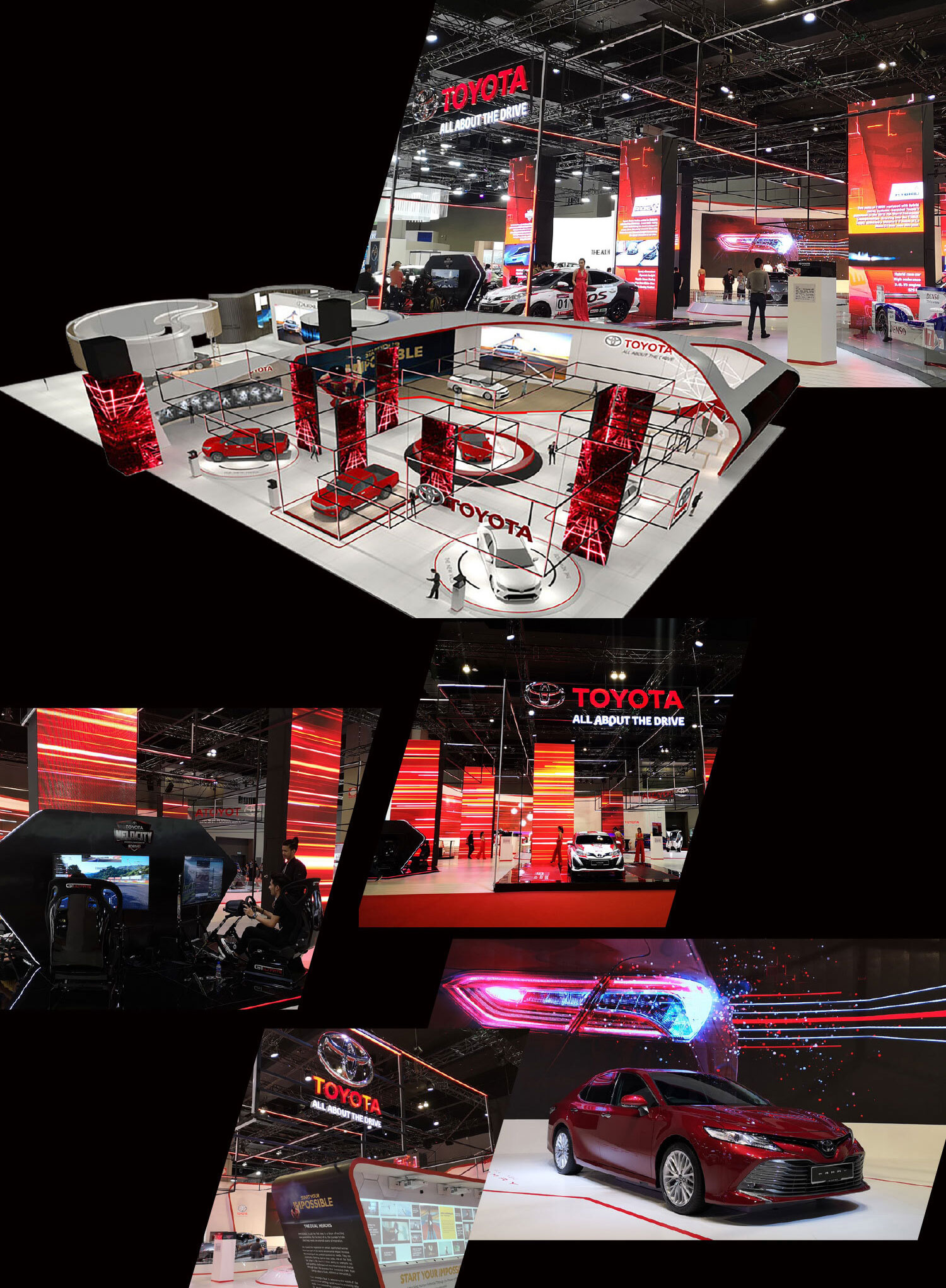 During Toyota’s exhibition at KLMS 2018, we delivered a fully customised kinetic light installation that featured stunning geometric structures. From designing and programming right up to the installation of the demo cars on a 360-degree rotating platform, the two-day set-up on a 1000 m2 layout produced the desired effect of cutting edge innovation.